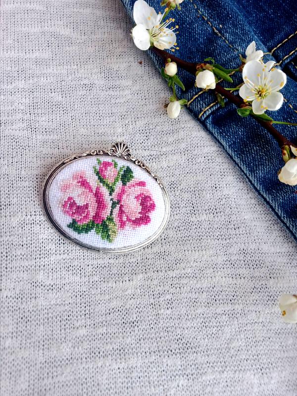 Брошка з мікровишивкою. Ручна робота. Вставка 30х40 мм