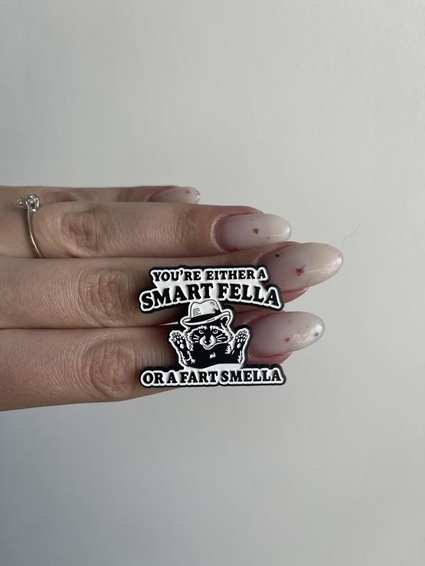 Цей жартівливий пін зі стильним єнотом у капелюсі та написом “You’re either a smart fella or a fart smella” — знахідка для поціновувачів іронії, сарказму та дотепних аксесуарів. Ідеально підійде як подарунок другу з гарним почуттям гумору або як унікальний акцент до вашого образу. В наявності лише 1 шт! Також доступне подарункове упакування — коробочка від 10 грн до 30 грн (залежить від розміру).