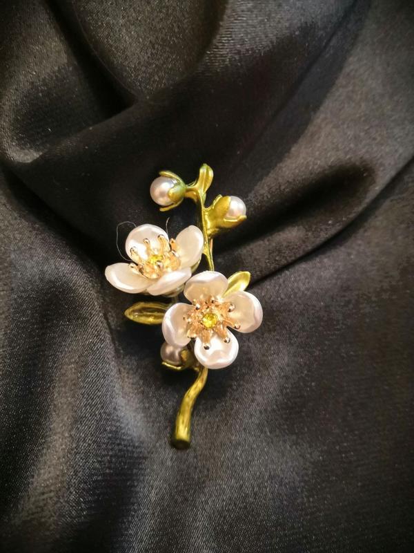 Брошь новая Ювелирный сплав, эмаль, перламутр, стразы