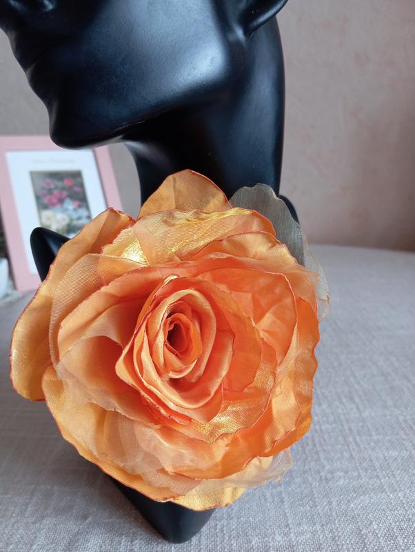 Троянда помаранчева з тканини брошка