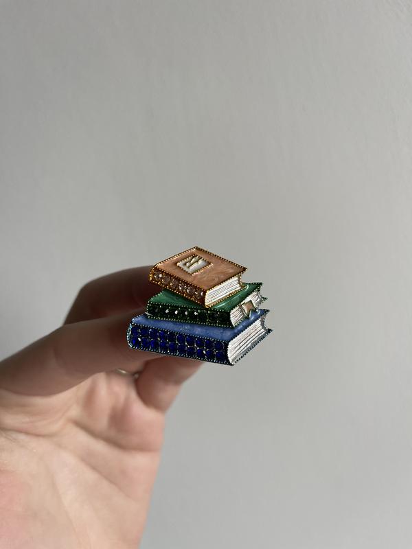 Ця чарівна брошка у вигляді барвистих книжечок — справжня знахідка для книгоманів, бібліотекарів, вчителів та мрійників. Кожна книга прикрашена блискучими камінцями, які створюють ефект магії та чарівності. Брошка виглядає яскраво й елегантно — це ідеальний аксесуар, щоб виразити свою любов до читання. Чудово пасує до піджаків, сумок, пальт або рюкзаків. Додасть образу інтелектуального шарму з ноткою гламурного блиску. 🎁 Стане чудовим подарунком для поціновувачів книжок, студентів, вчителів, а також усіх, хто захоплюється літературою. 🔹 В наявності — 10 шт 🎁 Можна додати подарункове упакування — коробочку (вартість: 10–30 грн залежно від розміру).