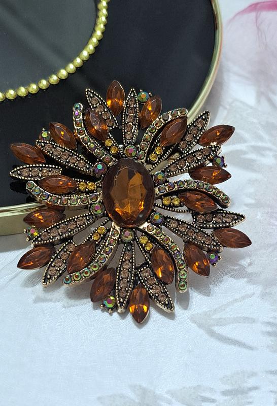💎Красива брошка з коричневими кристалами. 💎Фурнітура кольору старовинного золота. 💎Розмір: 6,4см * 5,5 см 💎Заходьте, будь ласка, на сторінку , де є великий вибір стильних прикрас : https://shafa.ua/member/mak2550 💎Відповім на всі запитання та надішлю додаткові фото.
