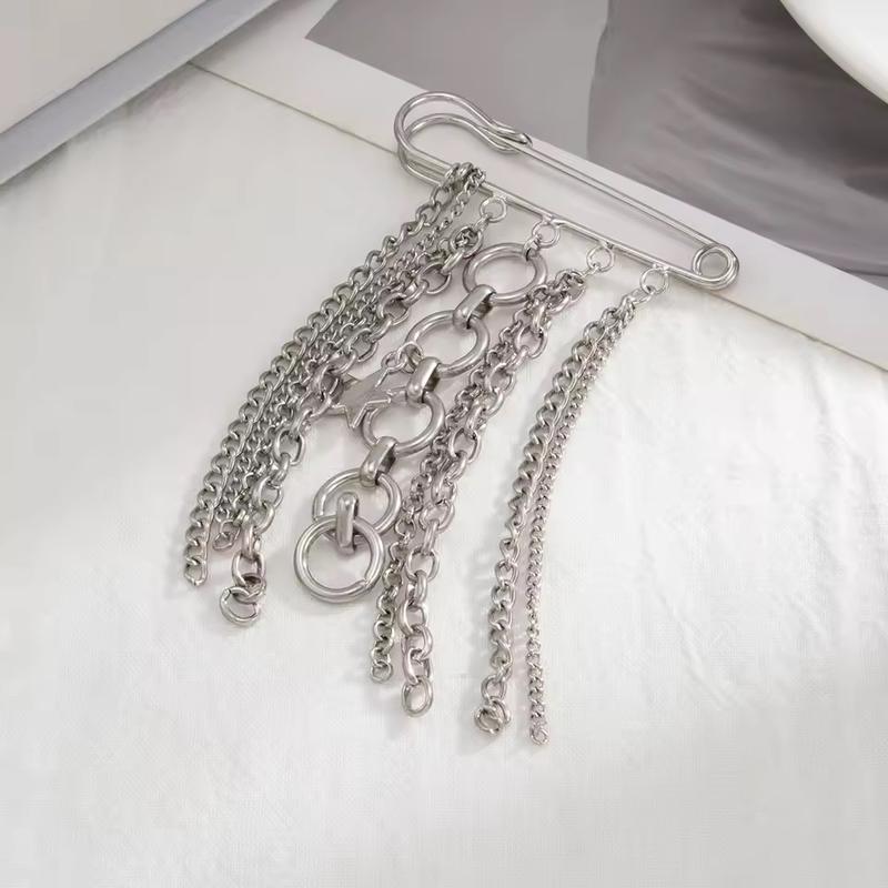 Брошка-каскад булавка із кільцями та підвісними ланцюжками
