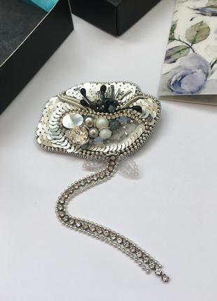 Серебристый мак из материалов премиум класса. Кристалл и жемчуг Swarovski, перламутр, итальянские и французские паетки, японская застёжка, которая не портит одежду. Сделаю на заказ в самые короткие сроки 3-4дня. Приедет к вам в подарочной коробочке