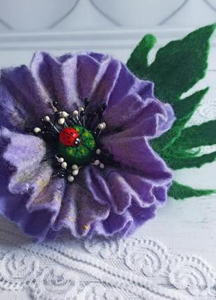 валяне брошка мак, діаметр близько 12 см