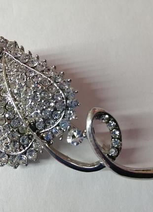 Брошь Европа * Листик* Состояние как новое. листик украшен стразами размер 6.5 х 3 см.