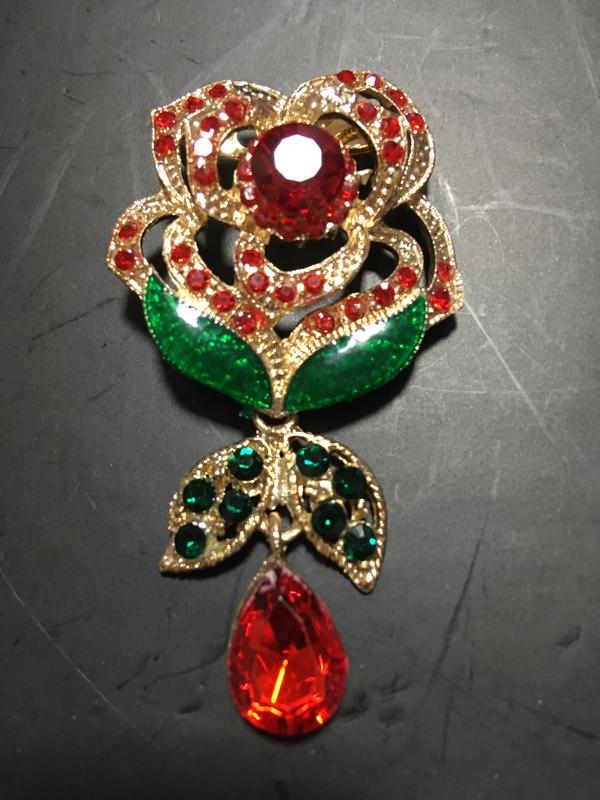 Брошка у золотому тоні кристали емаль розмір 6*4см
