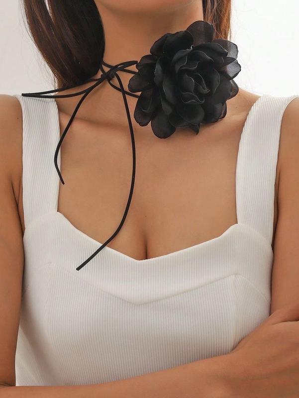 Чокер чорна квітаа на шию. прикраса на шию «пишна чорна квітка»
