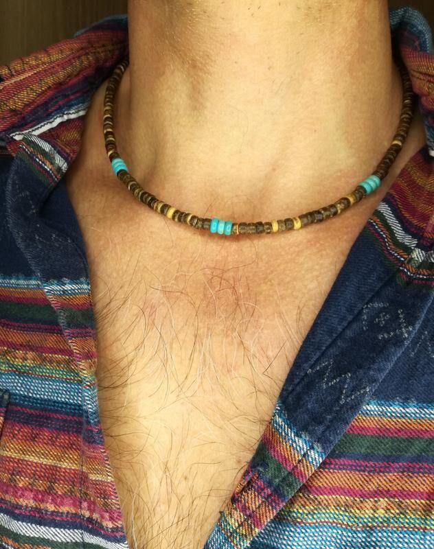 Шикарний чолвічий чокер на шию (бірюза, кокос)