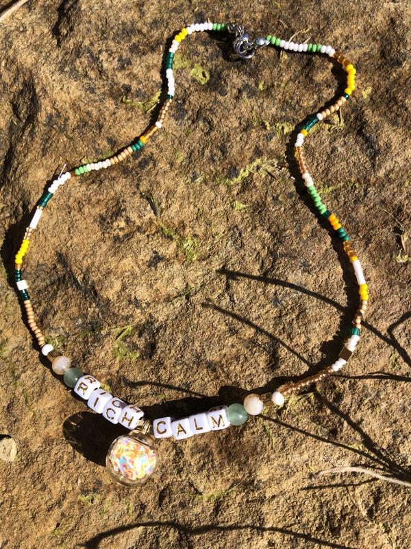 Чокер з бісеру та натуральних грошових мінералів (авантюрин та цитрин), заряджений на ізобіліє, розширення грошового потоку, стан достатку та спокою. Довжина: 42 см