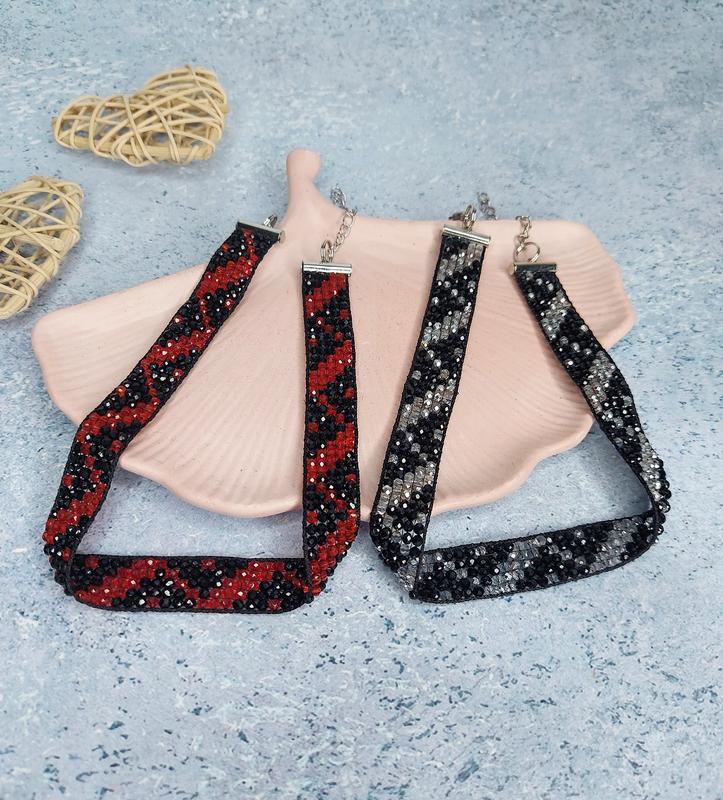 Чокери із кришталевих намистин. Неймовірні переливи. Ширина 1.5см при замовленні вказуйте колір, який обрали.