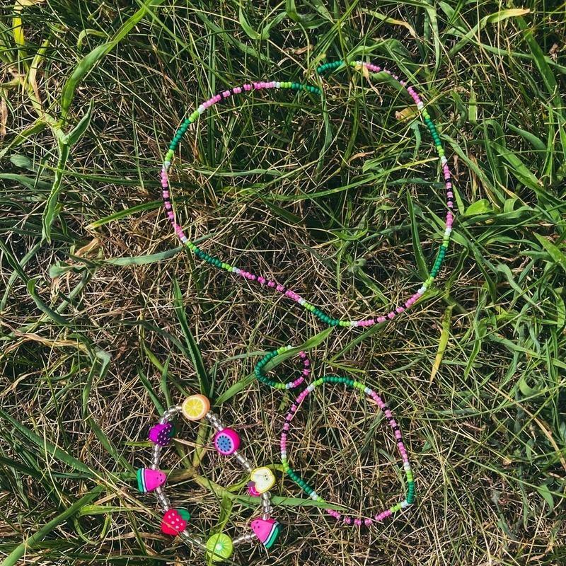 Фруктові прикраси 🍓🍉🥝🍑. Чокери із бісера різні варіанти. Зелений із смайлом та браслет кольоровий проданий