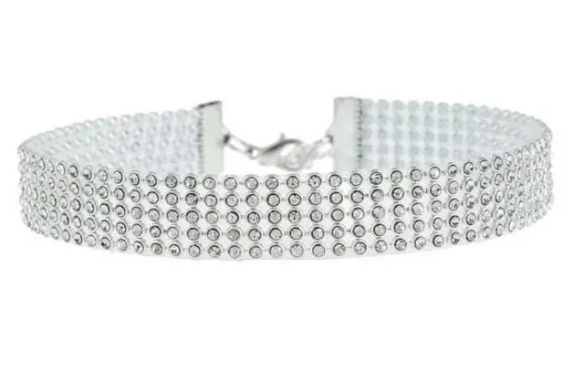 чокер зі стразиками хамелеон,п'ятиирядове, висота 1,6 см, довжина 30 см+5 см