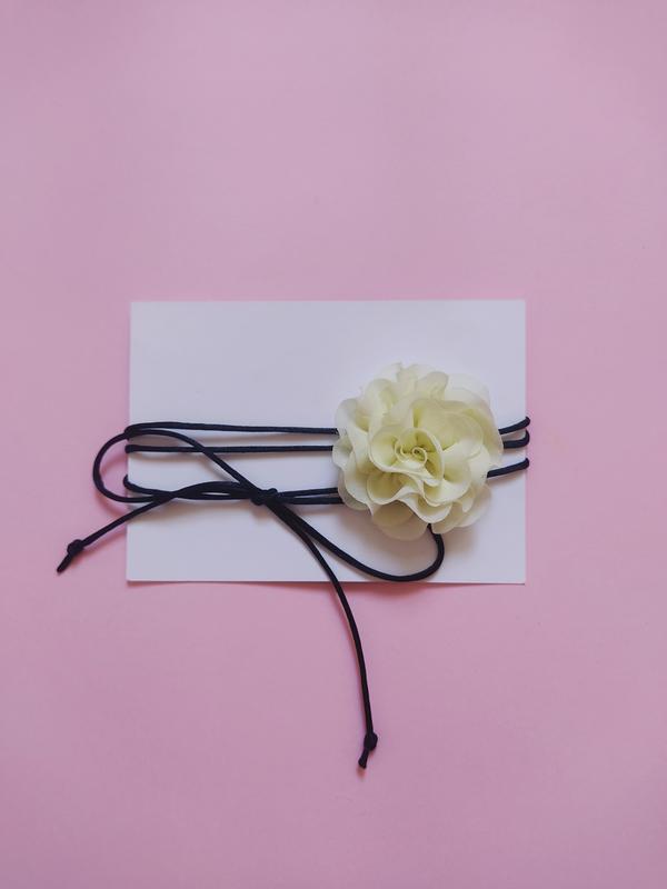 є в різних кольорах. можна носити не тільки як чокер, а і як пояс, прикраса на сумку, як браслет... Довжина шнура 1.50 см, діаметр квітки 6 см. Всім вдалих покупок!
