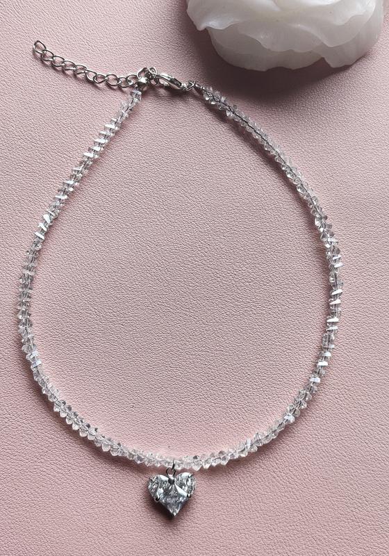 Чокер из ювелирного стекла с подвеской сердца ручной работы