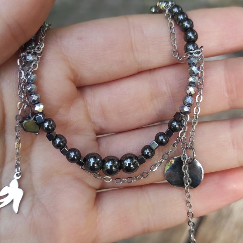 Чокер з гематиту і сріблястого ронделю з ланцюжками. фурнітура гепаалергичний сплав.
