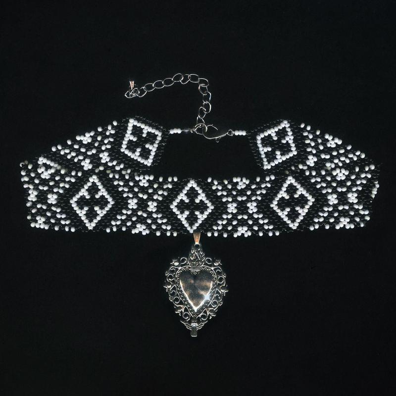 Черно-белый гердан чокер на шею с подвеской сердечком