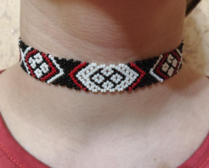 Гердан-чокер доповнить ваш образ своїми гарними орнаментами. Завдяки ланцюжку можна регулювати розмір. Довжина 28 см, ширина 2,2 см.