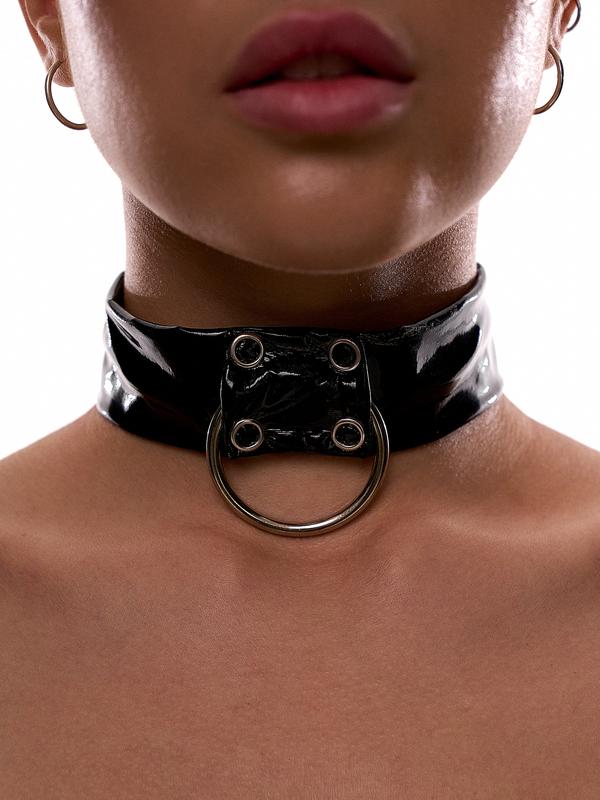 Чорний латексний чокер зі зйомним кільцем для танців, хілсу, тверку, екзоту, стрип пластик...
