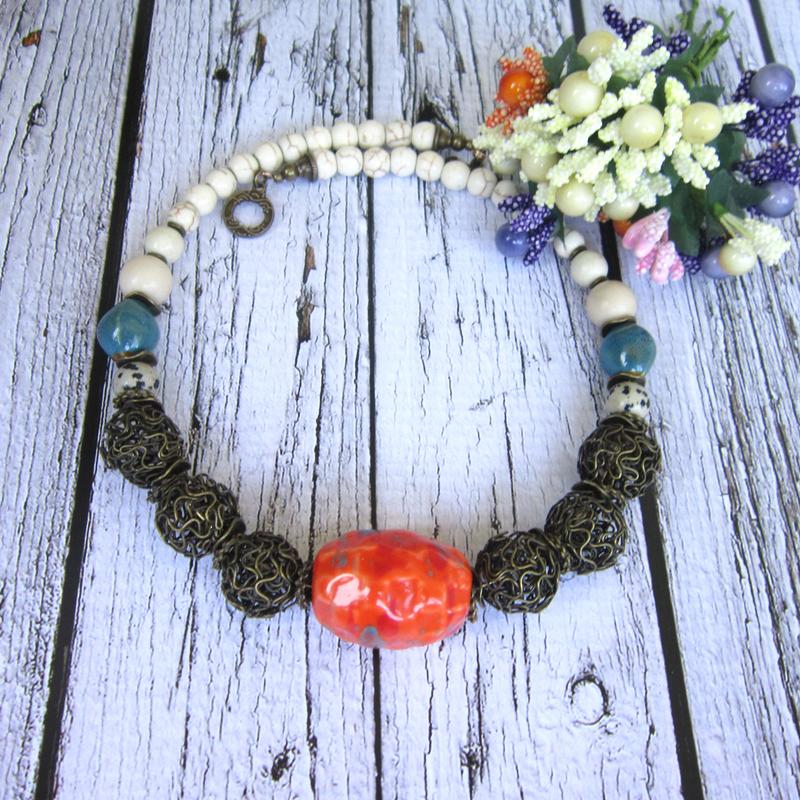 Стильний чокер з кераміки та говліту. 47 см. Можна замовити браслет чи сережки для комплекту