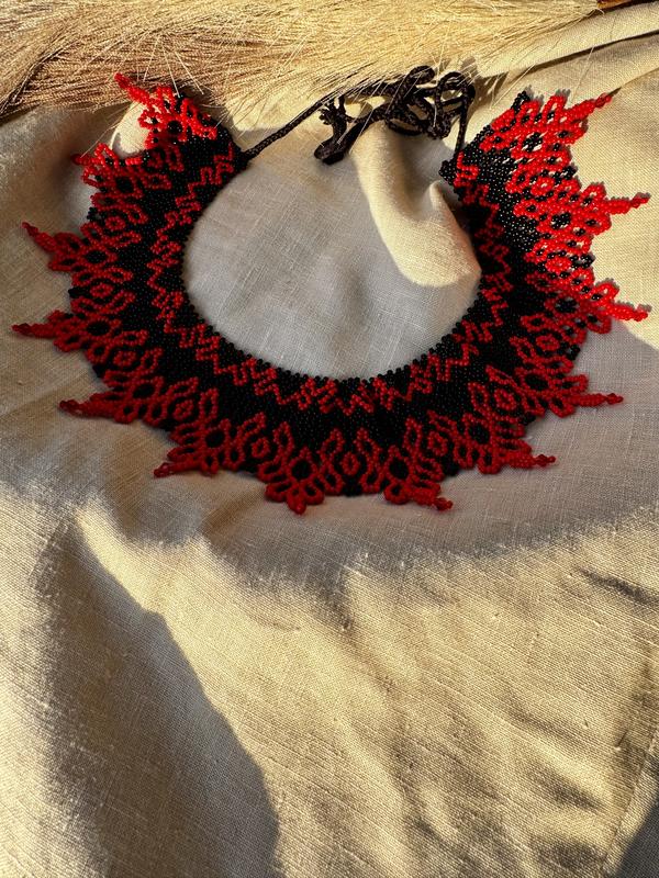 Бісерне кольє “Червона вишиванка”♥️ Прикраса з душею — ручна робота з українським орнаментом🕊️ Ціна: 459 грн