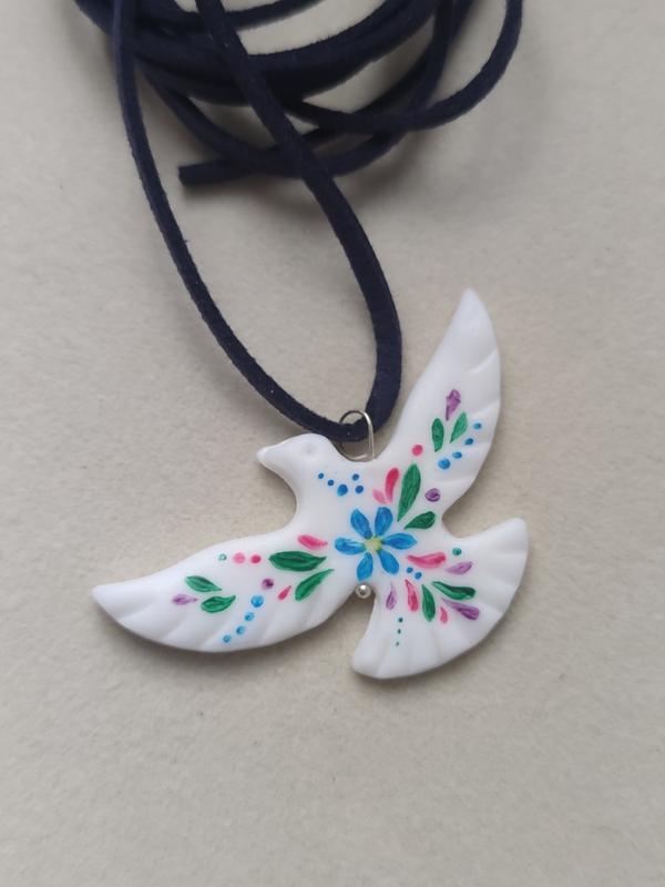 Нова Пташка виготовлена з полімерної глини, з ручним розписом, покрита лаком (для захисту) Стрічки бантові довжиною 1,5 м. Або Замшевий шнурок довжиною 1 м. Доставка Новою та Укрпоштою 📦 Можна оформляти через Шафу, буде дешевша доставка.