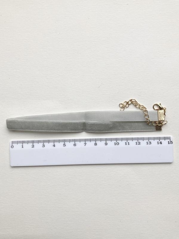 Бархатний чокер для шиї з м’якої оксамитової стрічки, приємний на дотик. Підійде як основа для рукоділля (додавання підвісок, декору, центральних елементів) або для носіння як мінімалістичний чокер. Оснащений металевою застібкою та ланцюжком для регулювання довжини.