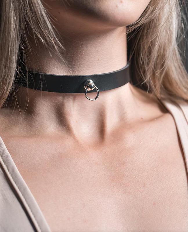 Ніжний чокер з колечком з щільної шкіри (всі розміри)