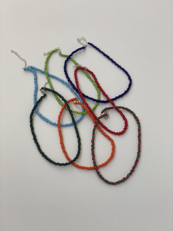Довжина 33 див. + 5 см додаткових кілець на застібці для регулювання розміру. Бісер нанизаний на металевий еластичний трос. Всі товари нові.