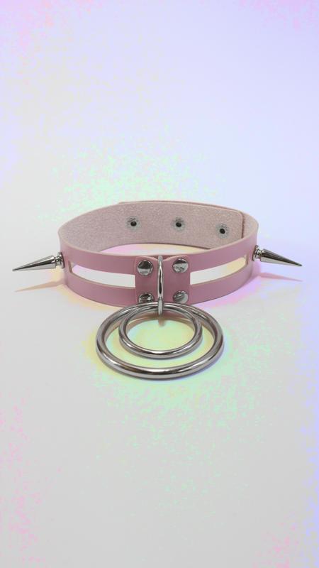 Рожевий неформальний альт чокер з шипами і кільцями готика кидкор аніме, косплей