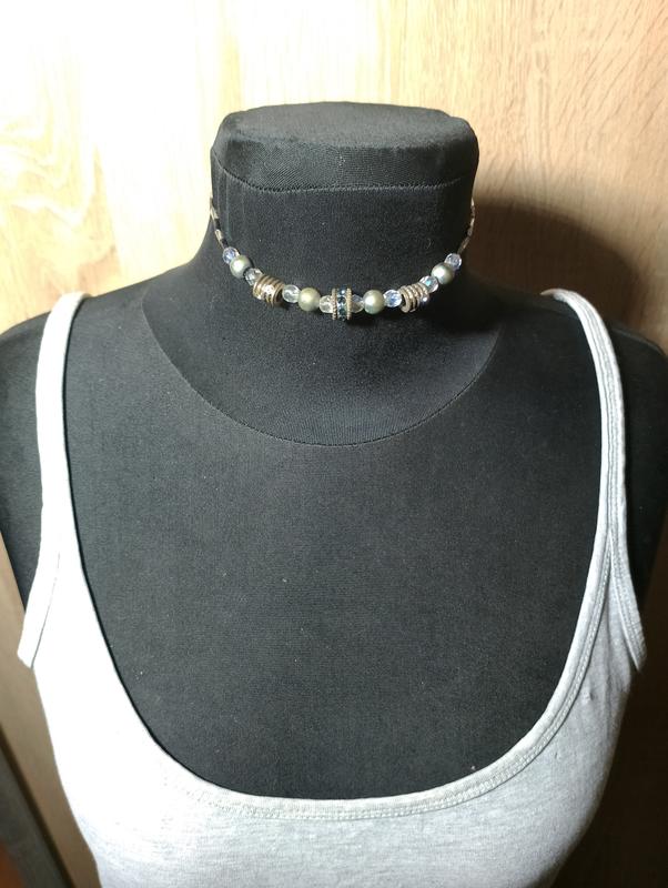 чокер намисто із стеклярусу з шармами і кришталиками на магнітній застібці довжина 33 см на одному шармике немає одного кристалика