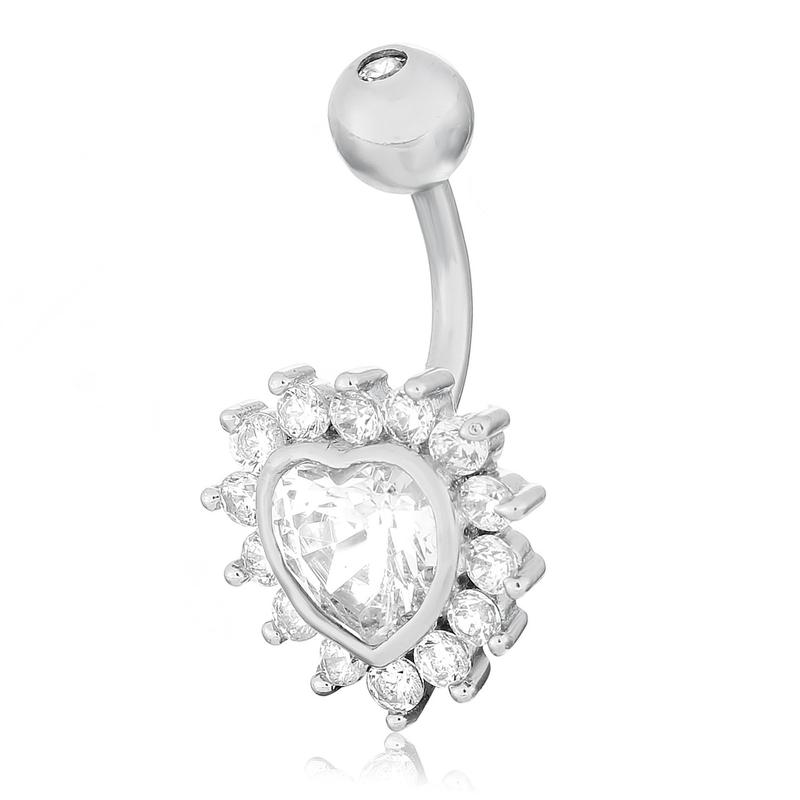 Срібний пірсинг з фіанітом та маленьким сердечком