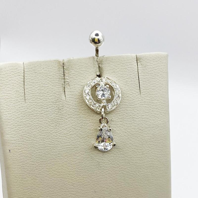 Пірсинг у пуп срібний з кубічним цирконієм "ізольда з каплею" 2,1 г