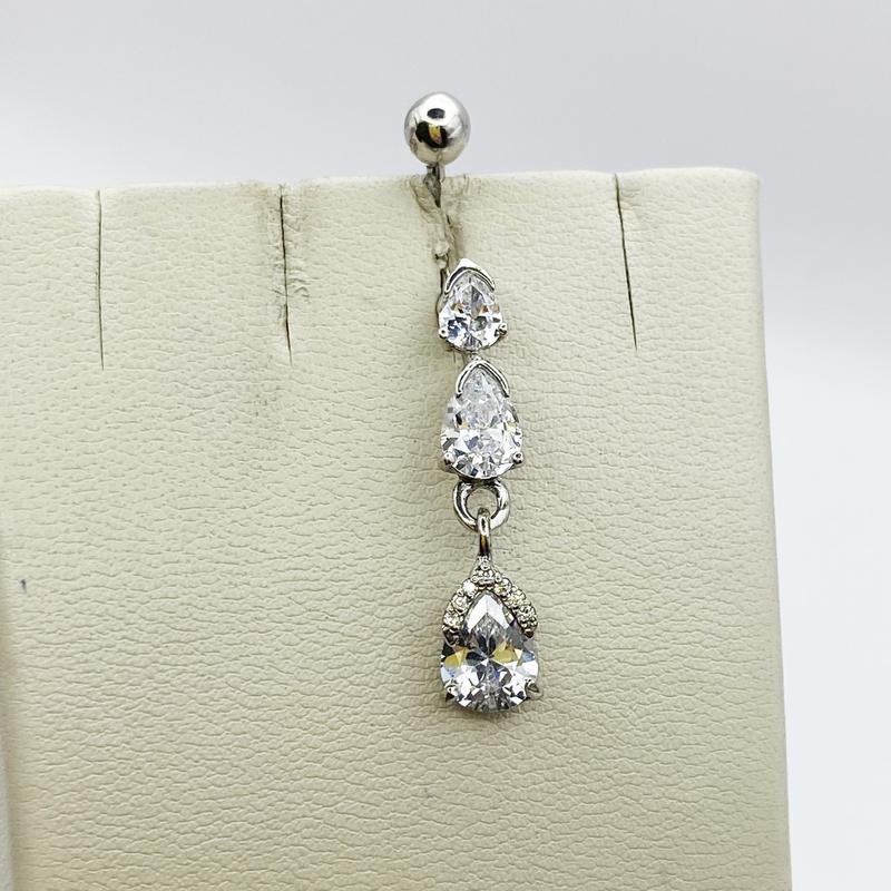 Пірсинг у пуп срібний з кубічним цирконієм "три капельки" 2,2 г