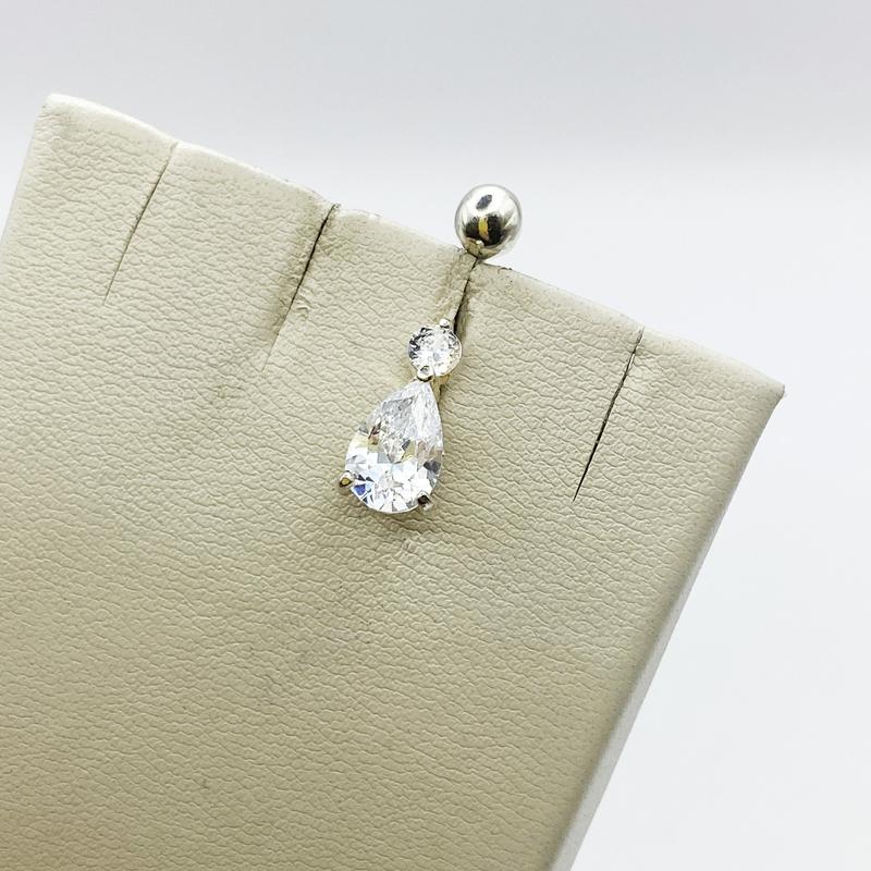 Пірсинг у пуп срібний з кубічним цирконієм "капля" 1,6 г