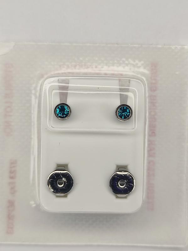 Пусеты серьги сережки стерильные studex под серебро с бирюзовыми кристаллами