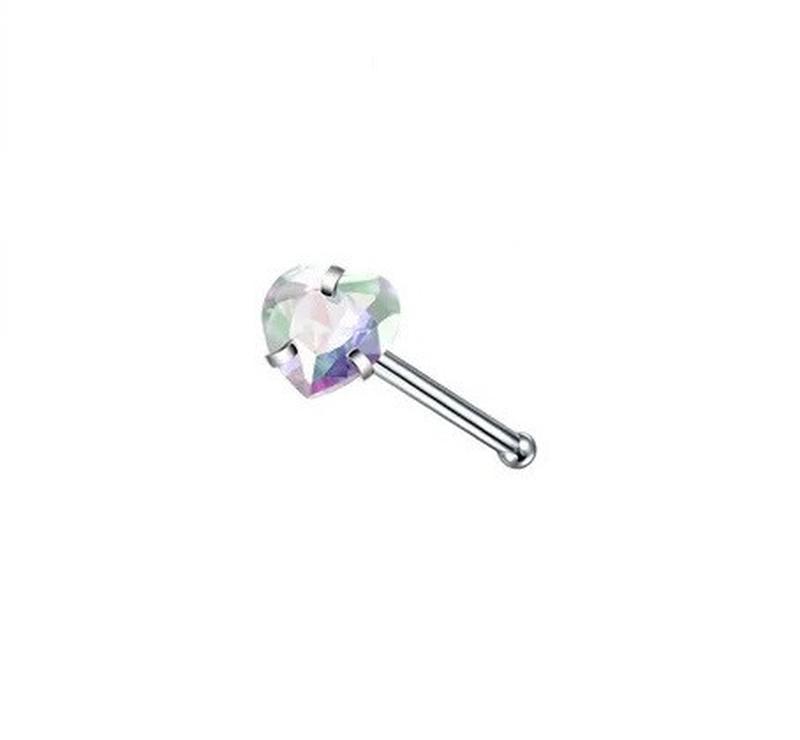 Сережка пірсинг ностріл finding для носа з кулькою серце страз перелив 2.8 мм х 3.2 мм нер...