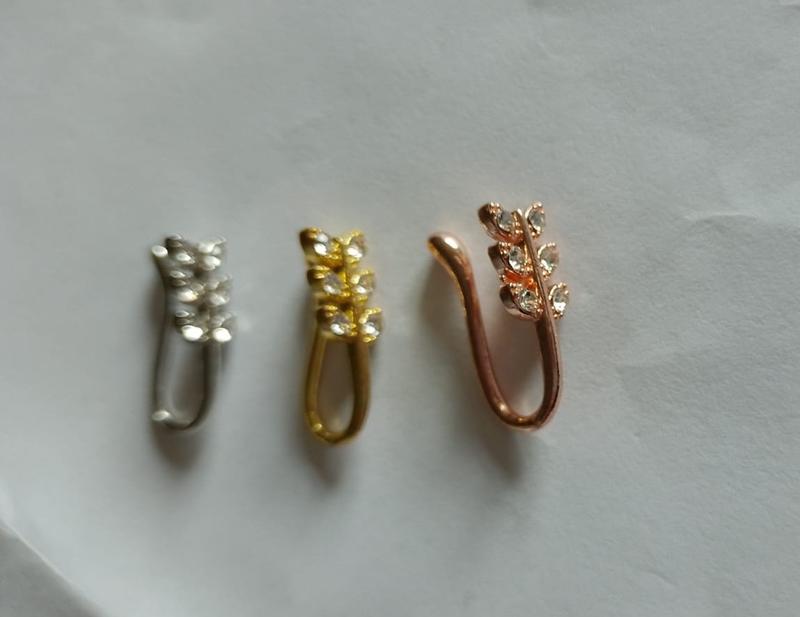 Пирсинг-кольцо обманка в нос, клипса лист с кристаллами