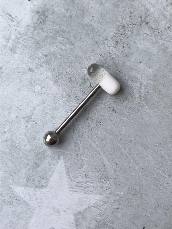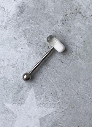 Пірсинг капсула пігулка таблетка біла прозора штанга сережка прикраса в язик для пірсингу...