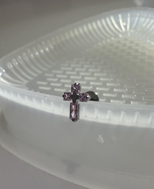 🍒 Замовлення вважається прийнятим після оплати на картку або smart ▪️ Титан + кварц ▪️ Розмір хрестика 5.1*7.2мм ▪️ Штанга 1.2*6мм або 8мм ▪️ Кайфово стає в проколи хелікс, мочки, додаткові мочки, конч, трагус тощо 🍒 Приємних покупок!