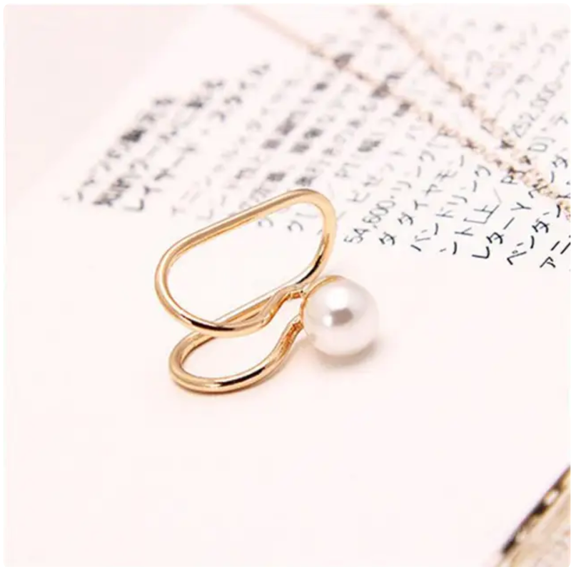 Колір: золотистий, білий Склад: Біжутерний сплав, скриня. перлів Розміри: Довжина — 2 см Ширина (низ) — 0,6 см Діаметр перлини — 0,8 см Застібка — без проколювання Доставка: Новая Почта, Укрпочта