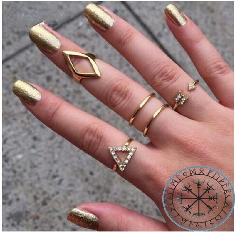 Набор колец 5 шт регулируемые дикий кристалл стрела золотой цвет комплект костяшки кольцо...