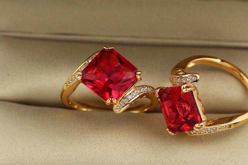 Кільце xuping jewelry червоний квадрат р 17 золотисте