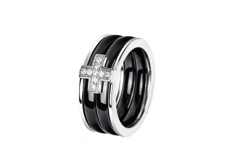 Кільце срібне з керамікою і фіанітами Бірмінгем Срібло 925 проба . Вага 8.39 гр. Ширина 9 мм чорний фіаніт, чорна кераміка кч057 родированный 19.5(р)