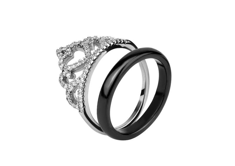 Кільце срібне з керамікою і цирконієм Срібло 925 проба . Вага 3.88 гр. Ширина 14 мм чернный куб. цирконій, кераміка 1.1211.1603.52 б родированный 16.5(р)