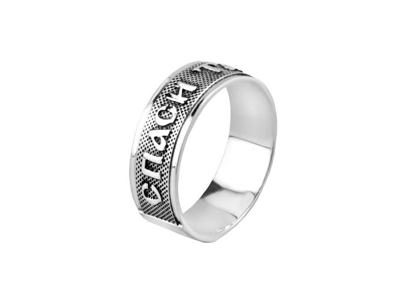 Кільце срібне Врятуй та збережі Срібло 925 проба. Вага 4.22 г. Ширина 7 мм без вставок 0554.10 чорний 22.5 (р)