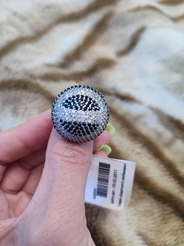 Кольцо усипано цирконієм,не одягалося ,не підійшов розмір.Дуже ефектно виглядає на руці.