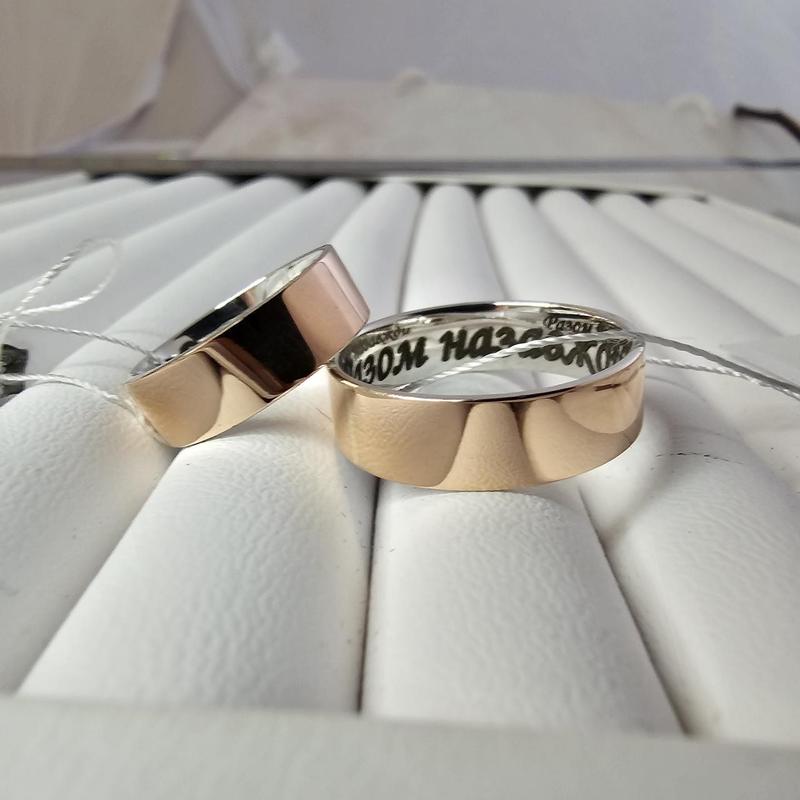 Обручки срібні Американки з золотою напайкою та гравіюванням пара Срібні обручки із золотою напайкою - це красиве нешироке кільце, яке буде ніжно поблискує при попаданні на його поверхню променів світла. Гравіювання на цих кільцях стане вашим таємним посланням другій половинці, обручки з гравіюванням будуть нагадувати вам один про одного в будь-який час і в будь- якому місці. Саме гладкі обручки пророкують гладке сімейне життя без перешкод і труднощів, таке повір'я існує з давніх-давен. Обручки символ вічного кохання і вірності, саме тому до вибору цього ювелірного виробу треба підійти відповідально. Адже срібні обручки із золотом радуватимуть не один рік. Кільця виконані зі срібла 925 проби та золотої напайки 375 проби з кожним роком стають все популярнішими, адже ціна на них значно нижча, ніж на золоті, а зовні від золотих обручок їх не відрізнити. Доглядати за обручками з двох дорогоцінних матеріалів легко і просто, вам не знадобляться додаткові кошти, щоб ваша пара обручок сяяла як у день покупки. Достатньо раз на місяць промити з теплої води та просушити рушником. На нашому сайті ви можете купити одне або пару срібних з золотом широких обручок різних моделей і так само підібрати до них витончену коробочку футляр. Прикраси виконані зі срібла 925 проби, що засвідчено клеймом ювелірної палати України. Також ми співпрацюємо з оптовими покупцями та за системою дропшипінг. *********************