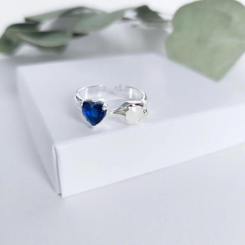 Каблучка з камінцями синього та білого кольору. Ювелірний сплав. Покриття - срібло S925. Розмір 17 та регулюється.