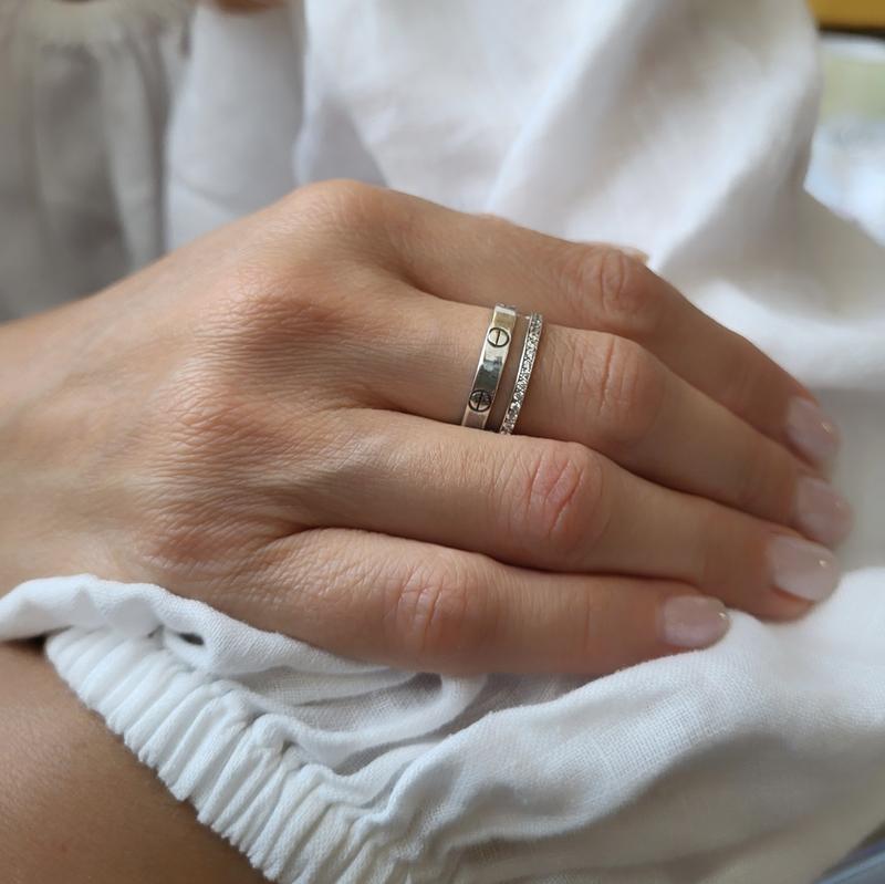 Кільце Доріжка з Кам'янками Срібло 925 проба вага 3.99г Вставка камінців циркони білого кольору розмір 18.0 Ширина 7 мм Виробництво Україна На всіх ювелірних виробах стоїть проба намету України, що підтверджує матеріал виробу -- і законність їх реалізації на території України та іменник виробника, який гарантує відповідність ювелірних виробів вимогам ГСТУ 3527-97 "Виробу ювелірні з дорогоцінних матеріалів